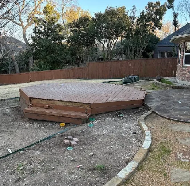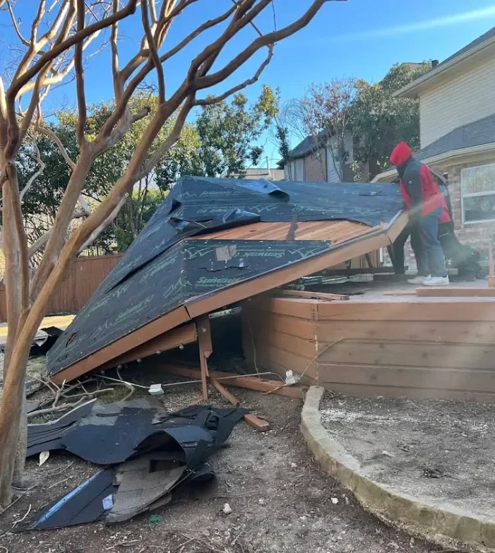 We remove all types of decks, including wood, composite, and multi-level structures. We also handle related features like stairs, railings, pergolas, and attached fencing.