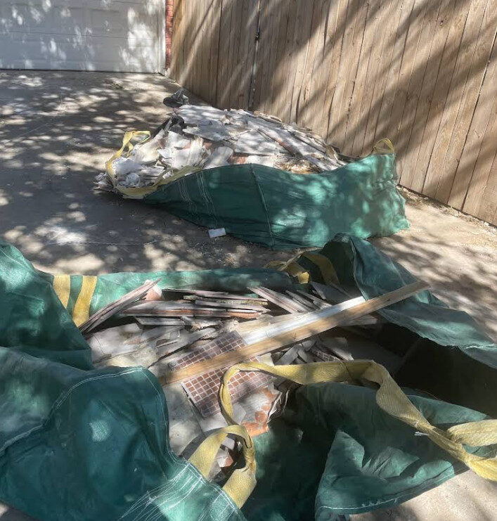 We separate wood, metal, and tile before disposal