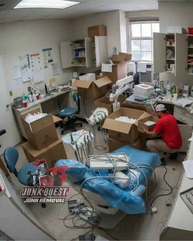 After dental office cleanout in Plano, TX showing a cleared medical workspace after Junk Quest removed dental chairs, furniture, and equipment